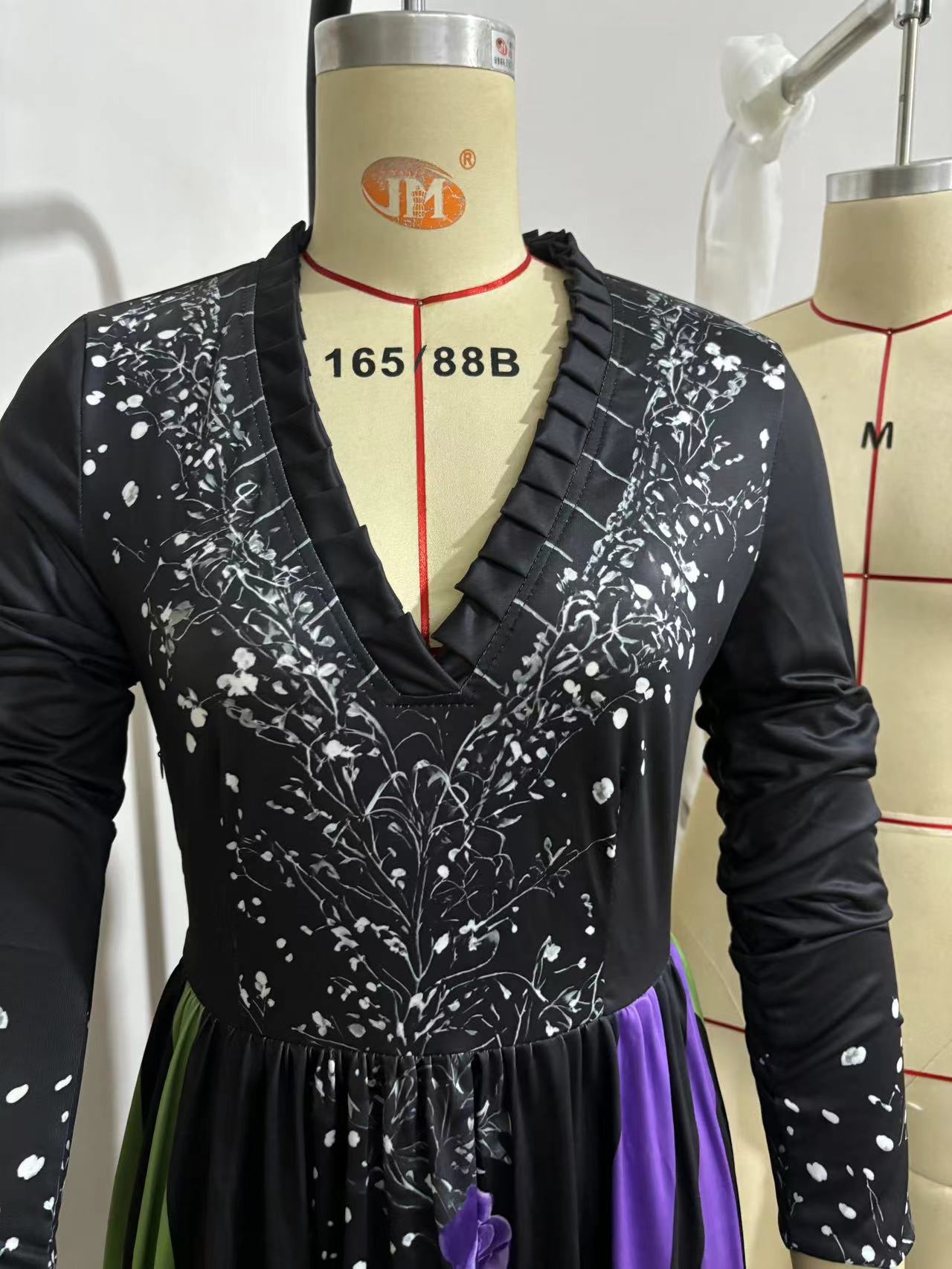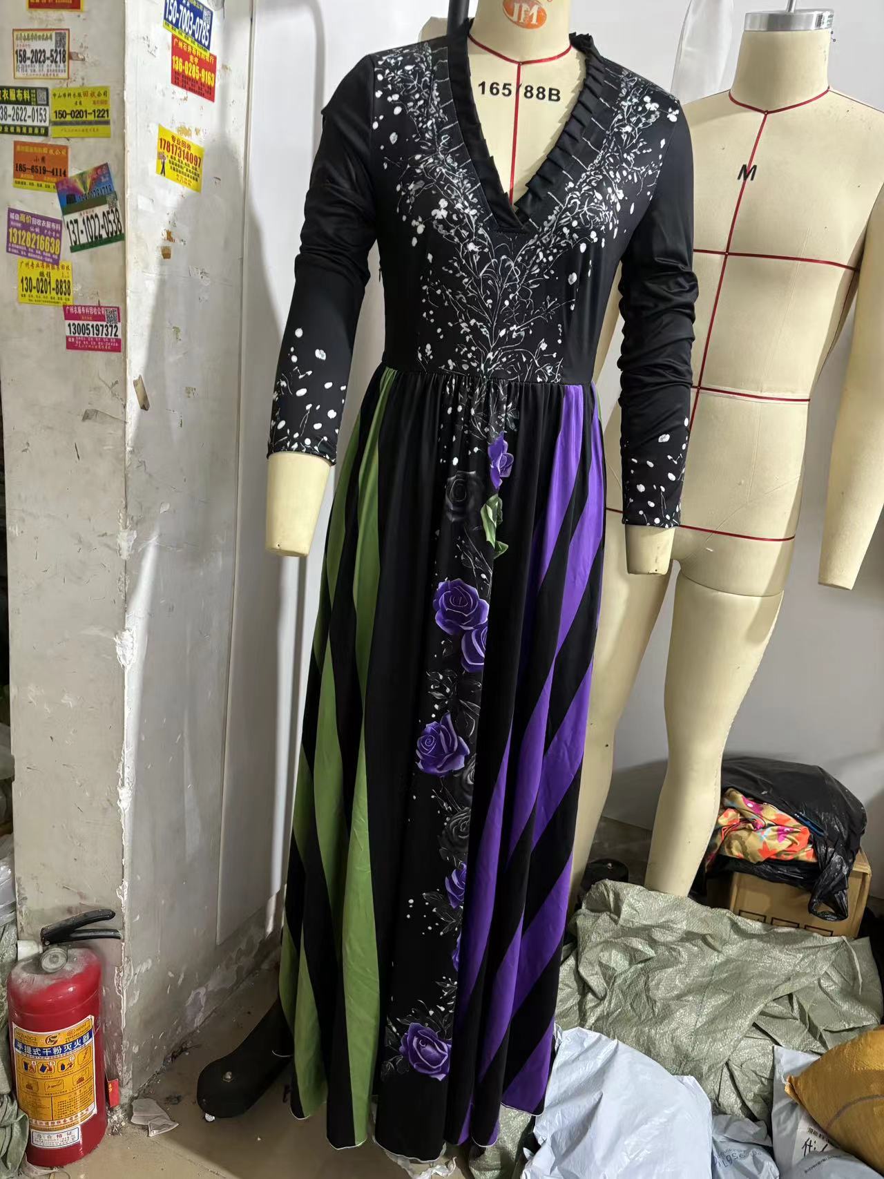 V-neck Long Sleeve Dress Large Swing Dress Halloween Dress